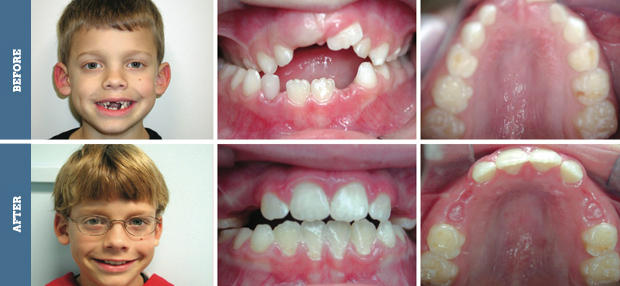 - Increased space to allow for eruption and alignment of crowded upper front teeth.